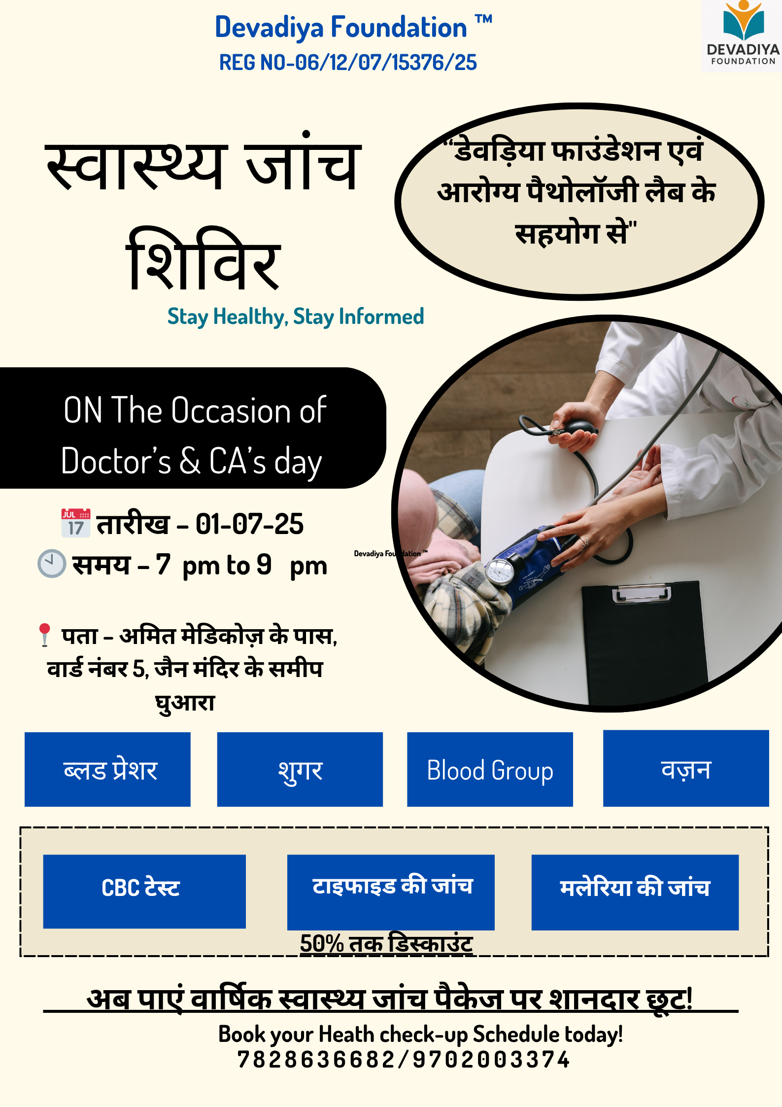 Health Checkup Camp on the Occasion of Doctor's Day and CA's Day