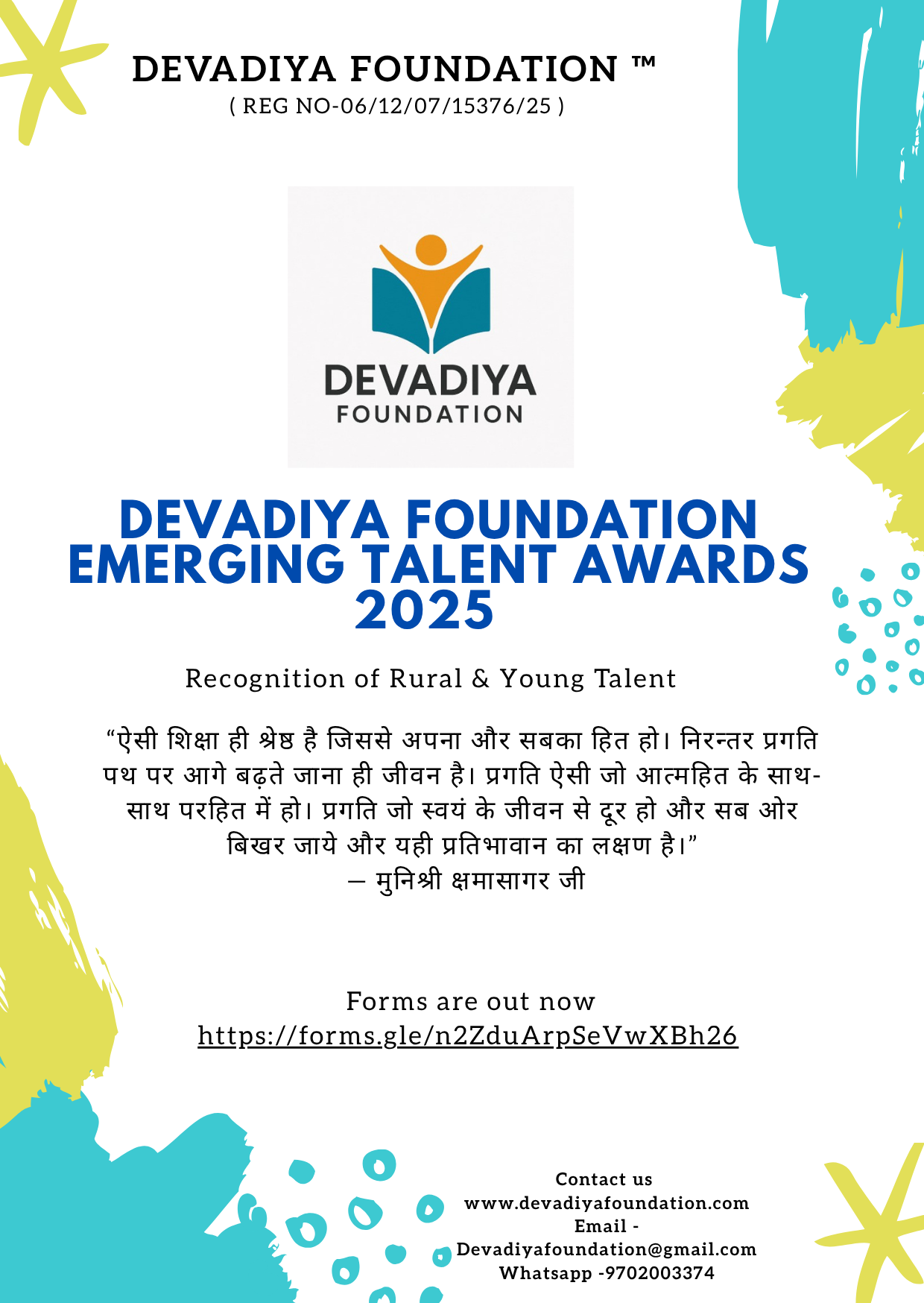 Devadiya Foundation Emerging Talent Awards -2025