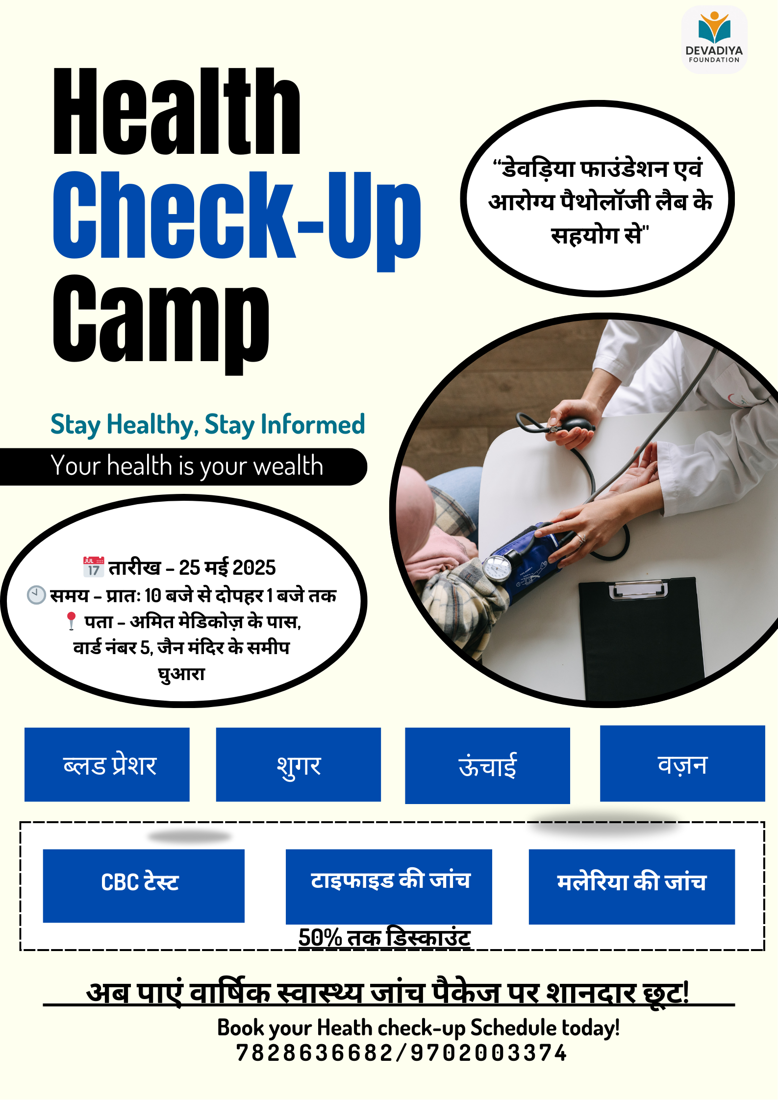 Health Checkup Camp at Devadiya Foundation Head Office in association with Arogya Path Labs.. Read More