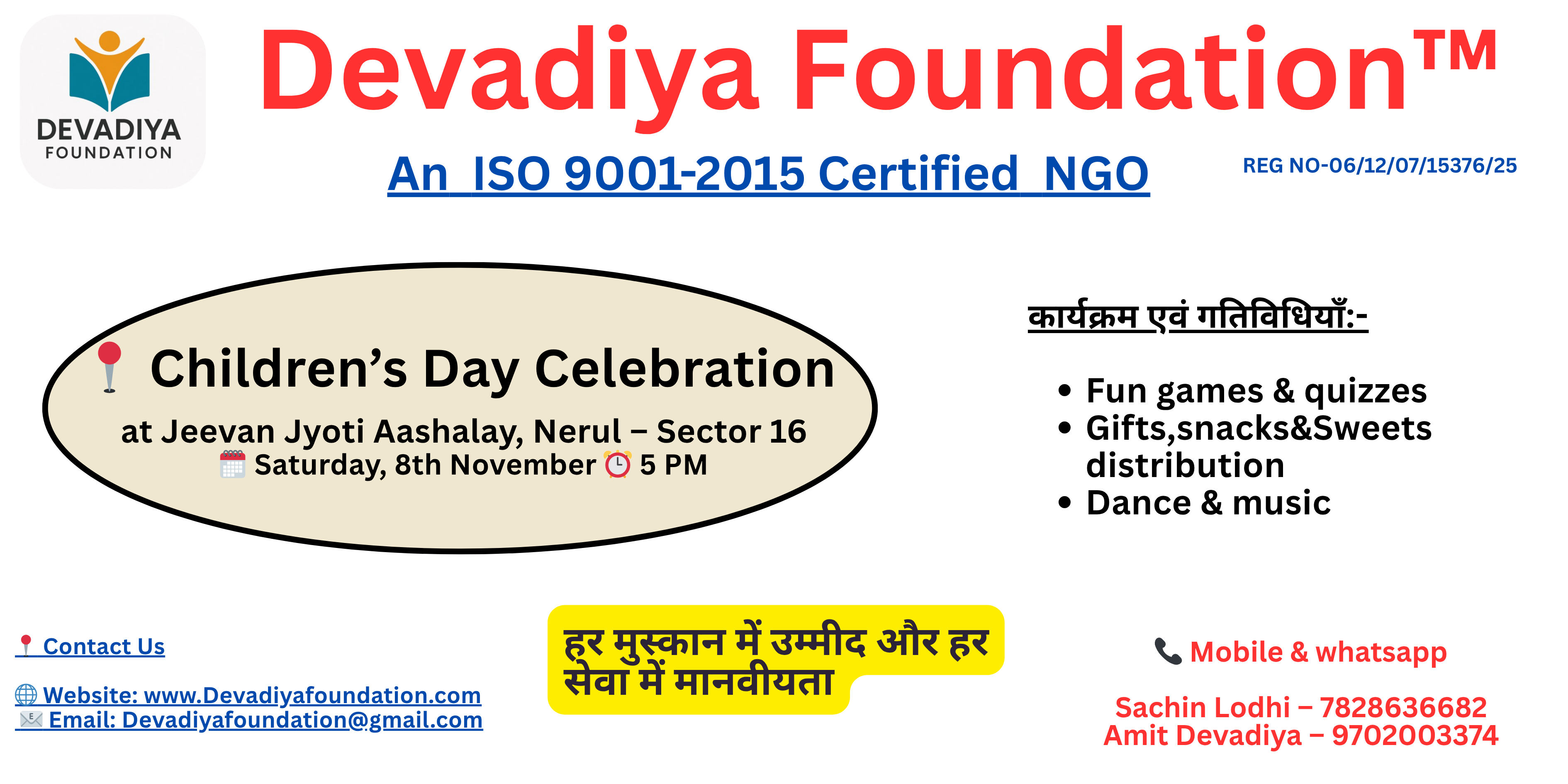 Join us a Volunteer for Celebration of Children Day at Jeevan Jyoti Ashalaya on 8th Nov at 5 PM..Read More