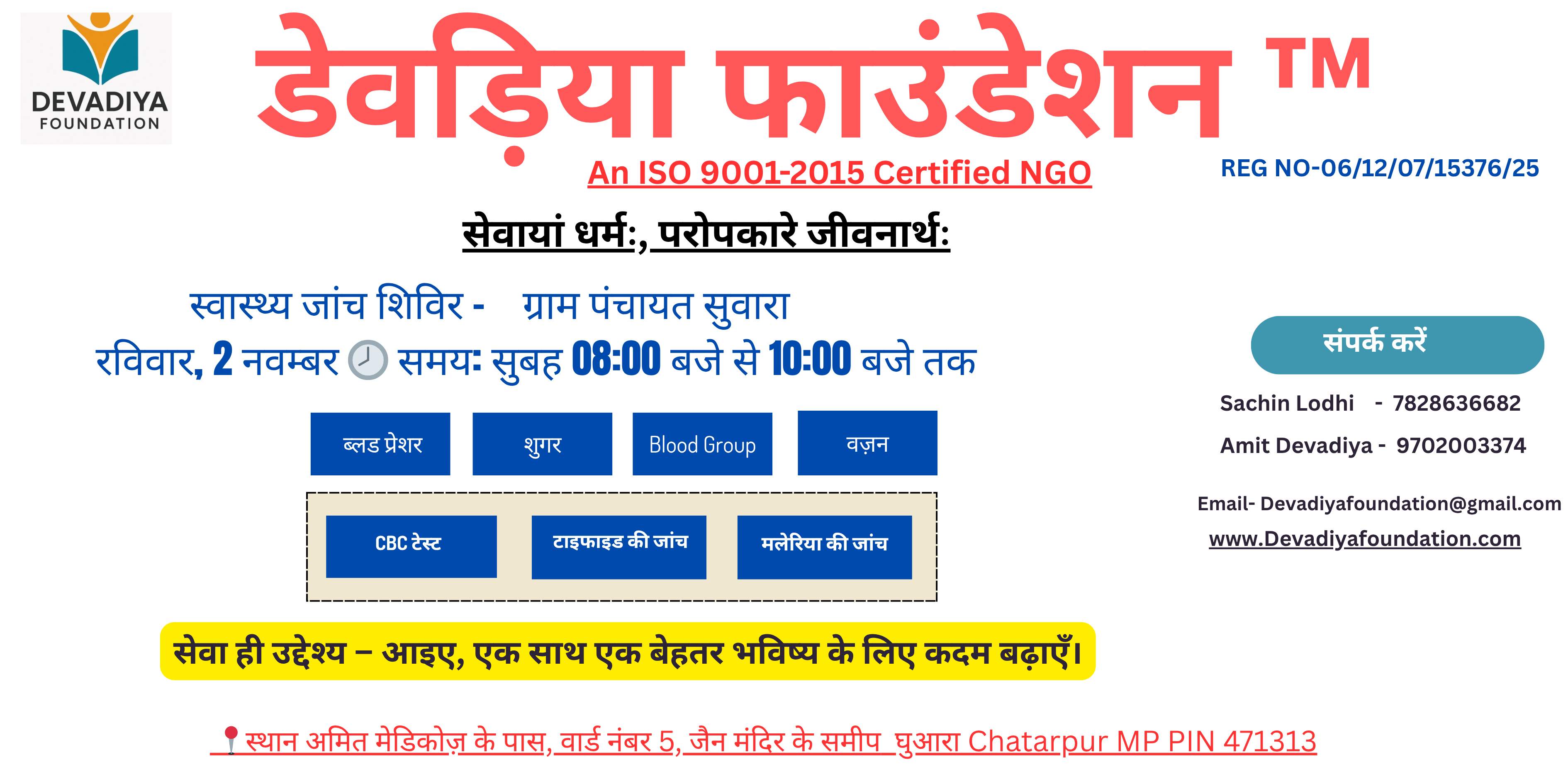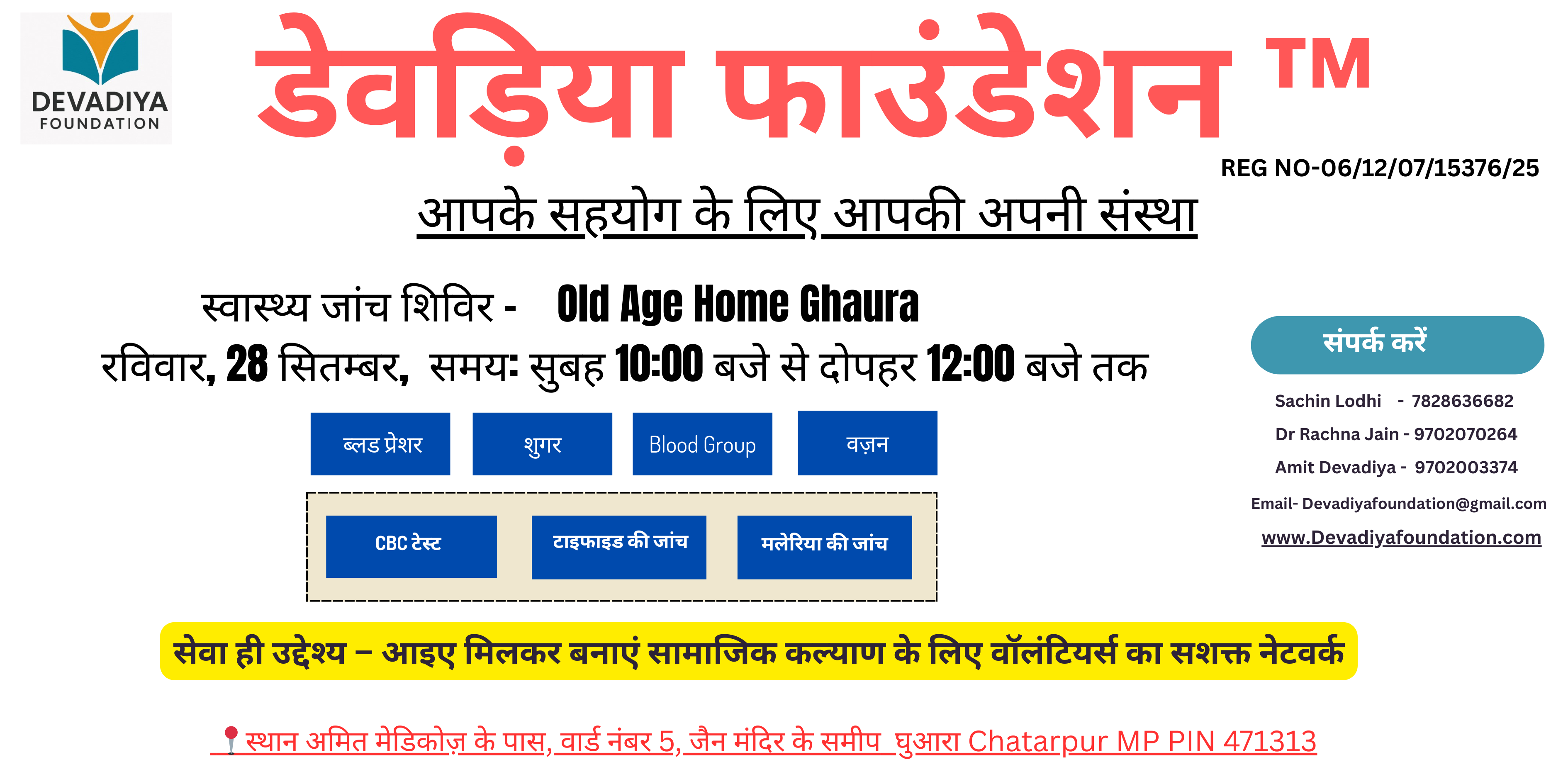 Devadiya Foundation मध्य प्रदेश के छतरपुर ज़िले के 50 गाँवों में निःशुल्क स्वास्थ्य शिविरों के सफल संचालन हेतु संकल्पित है।.. Read More
